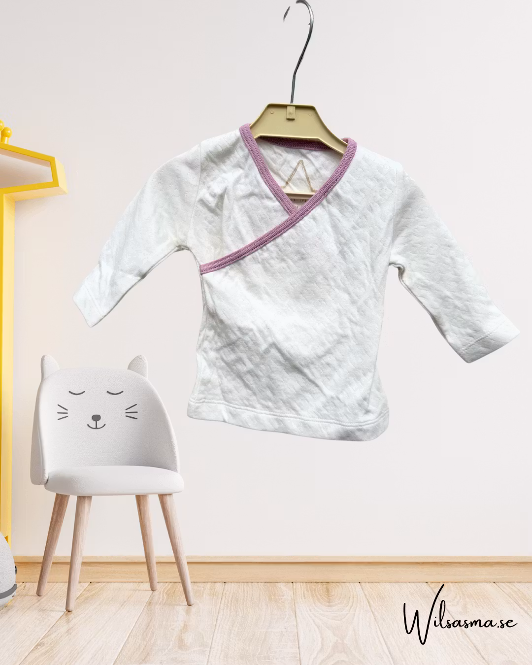 En tröja att älska – från första stund. Denna omlott-tröja från Paola Maria är tillverkad i 100 % ekologisk bomull och designad med omsorg för de allra minsta. Den mjuka, vita bomullen pryds av diskreta vävda små hjärtan, och de rosa kantbanden ger en vacker, naturlig kontrast.