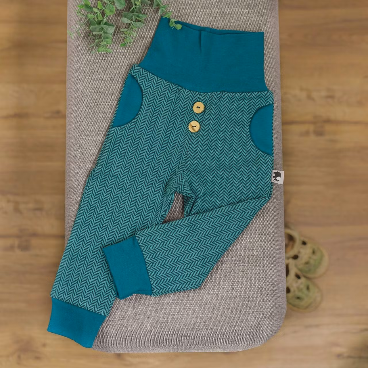 Det högkvalitativa ekologiska jacquardtyget känns fantastiskt mjukt och bibehåller form och färg även efter frekvent användning och tvätt. Ett absolut favoritplagg. Byxorna är designade med breda midjeband och benslut för en bekväm passform. Dessa kan enkelt rullas upp först och lämnas ned senare för olika stilar. De kontrasterande fickorna och de exklusiva träknapparna i olivträ tillför en extra touch. Allt är naturligtvis tillverkat ekologiskt.