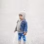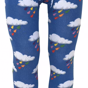 Ekologiska barnstrumpbyxor med regnmoln med regnbågsdroppar på blå botten.