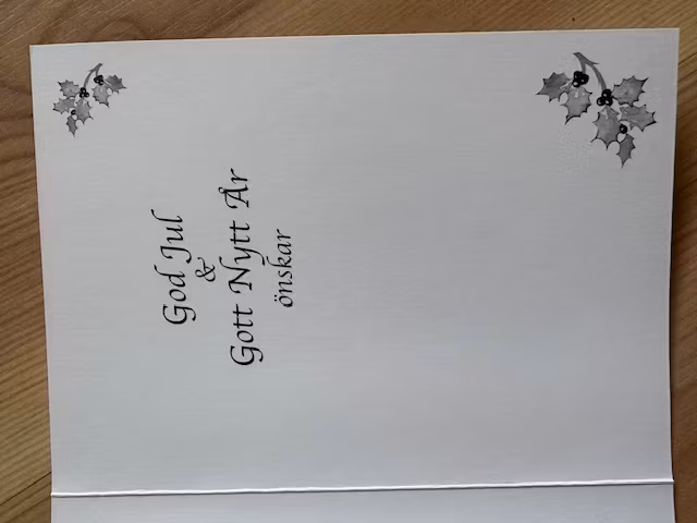 Fin insida med järnekskvistar och text god jul och gott nytt år