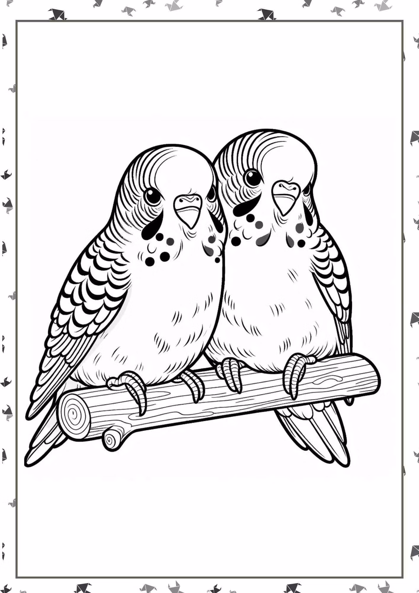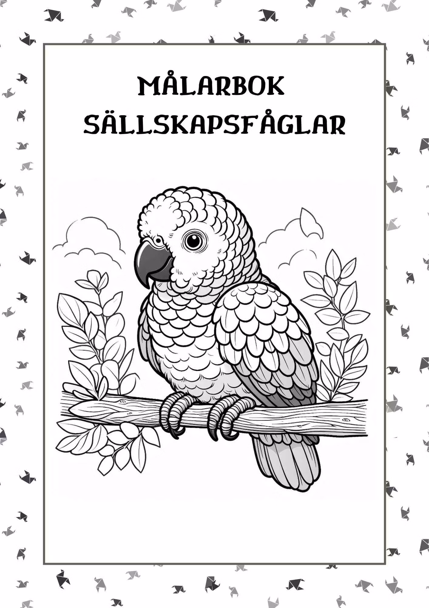 Flyg in i en värld av färgglada sällskapsfåglar med vår målarbok!