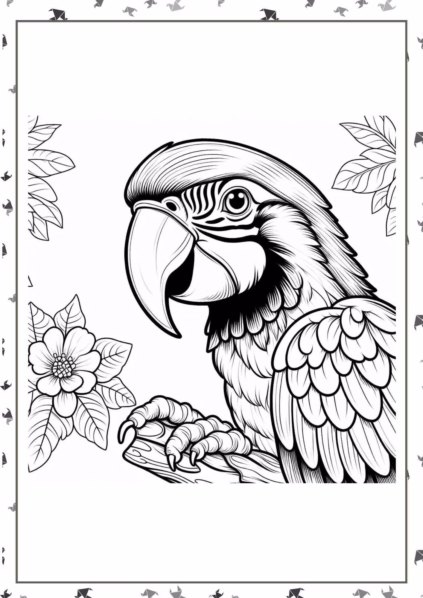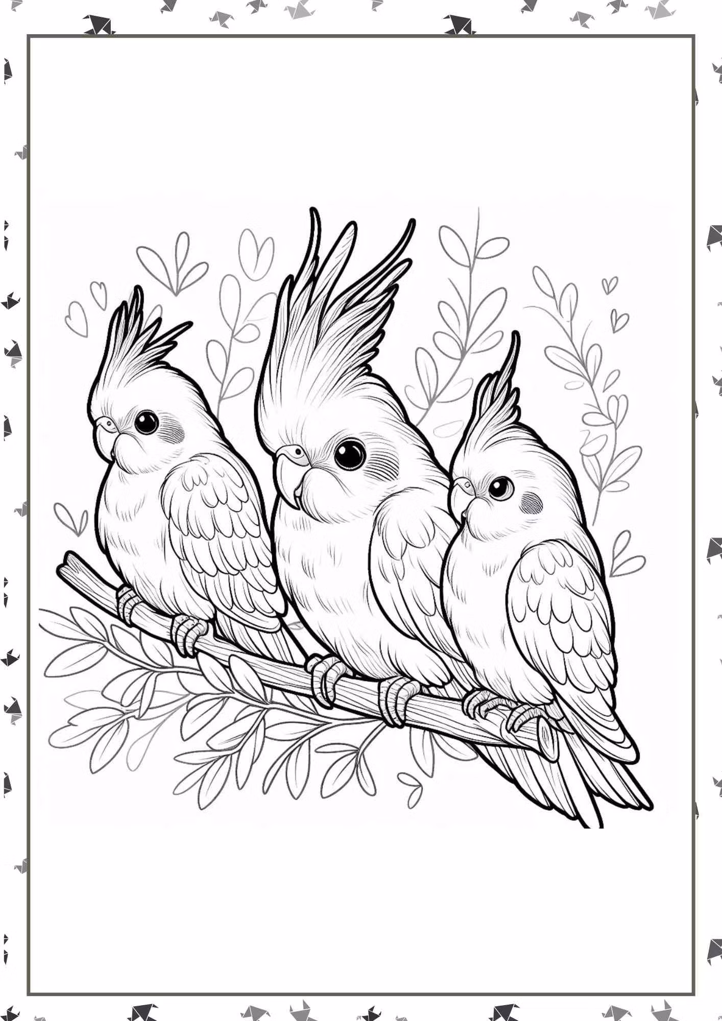 - 25 Bilder att Färglägga: Varje sida presenterar en unik sällskapsfågel, redo att få liv med barnens fantasi och färger.
