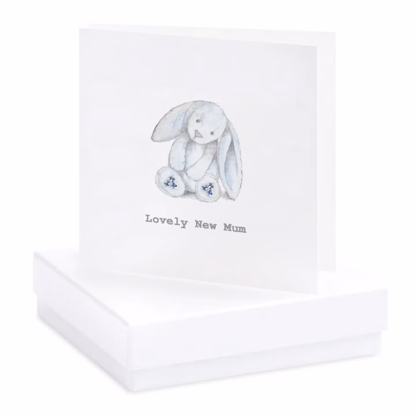 Detta exklusiva hälsningskort från Crumble and Core levereras med ett par handgjorda örhängen i sterlingsilver med gnistrande kristaller.