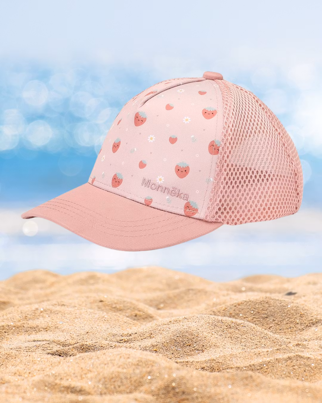 Söt barnkeps med solskärm – Strawberries-kollektionen från Monnka