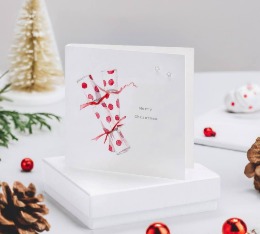 Varje set kombinerar ett vackert handritat julkort med ett par handgjorda örhängen i sterlingsilver – en liten, lyxig present i sig.